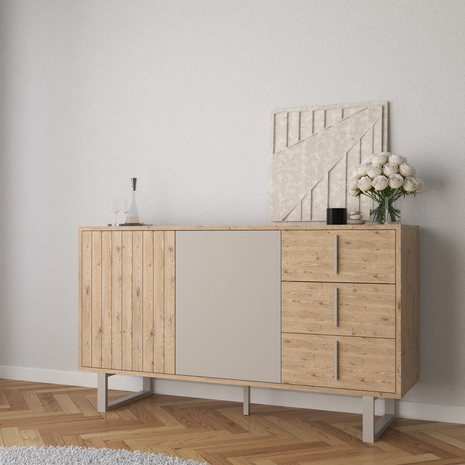 Jesolo Sideboard, Three Drawers, One Door - Mercure Oak Finish