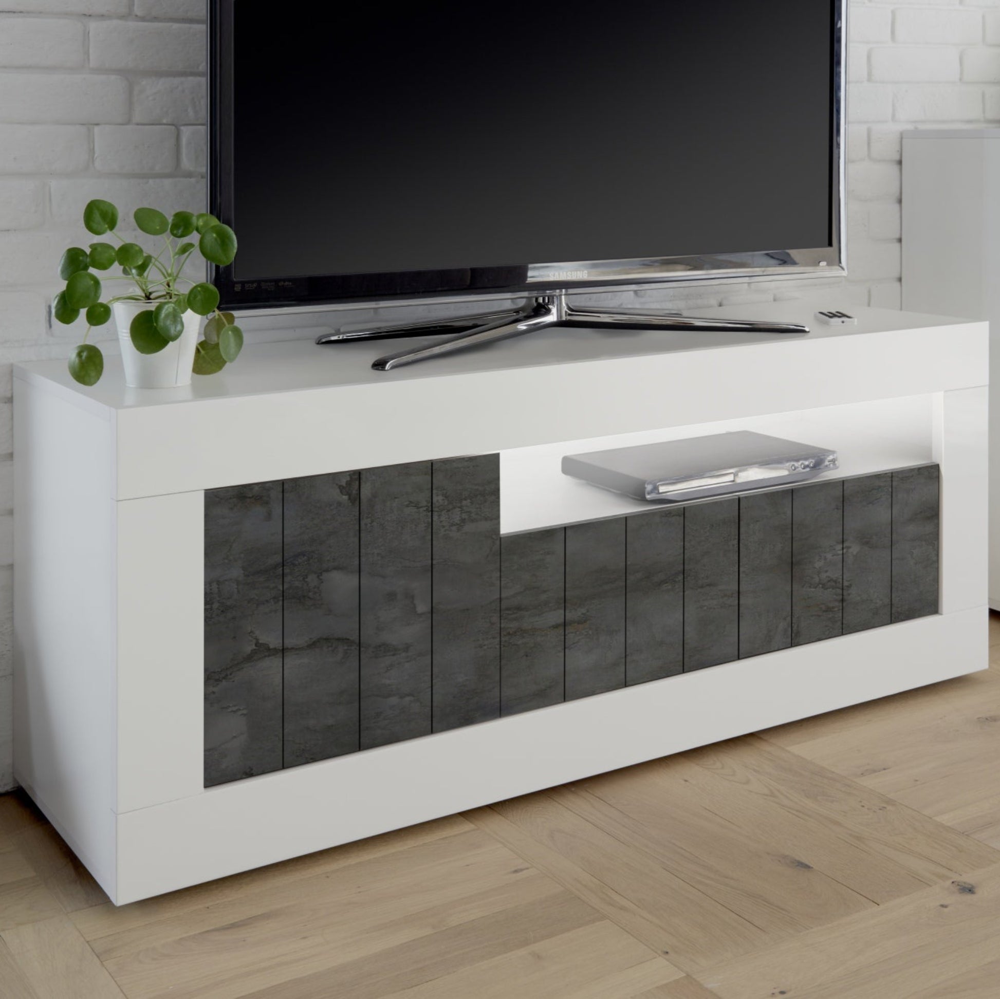 Como TV Stand, Three Doors, AV Storage - Gloss White and Anthracite Finish