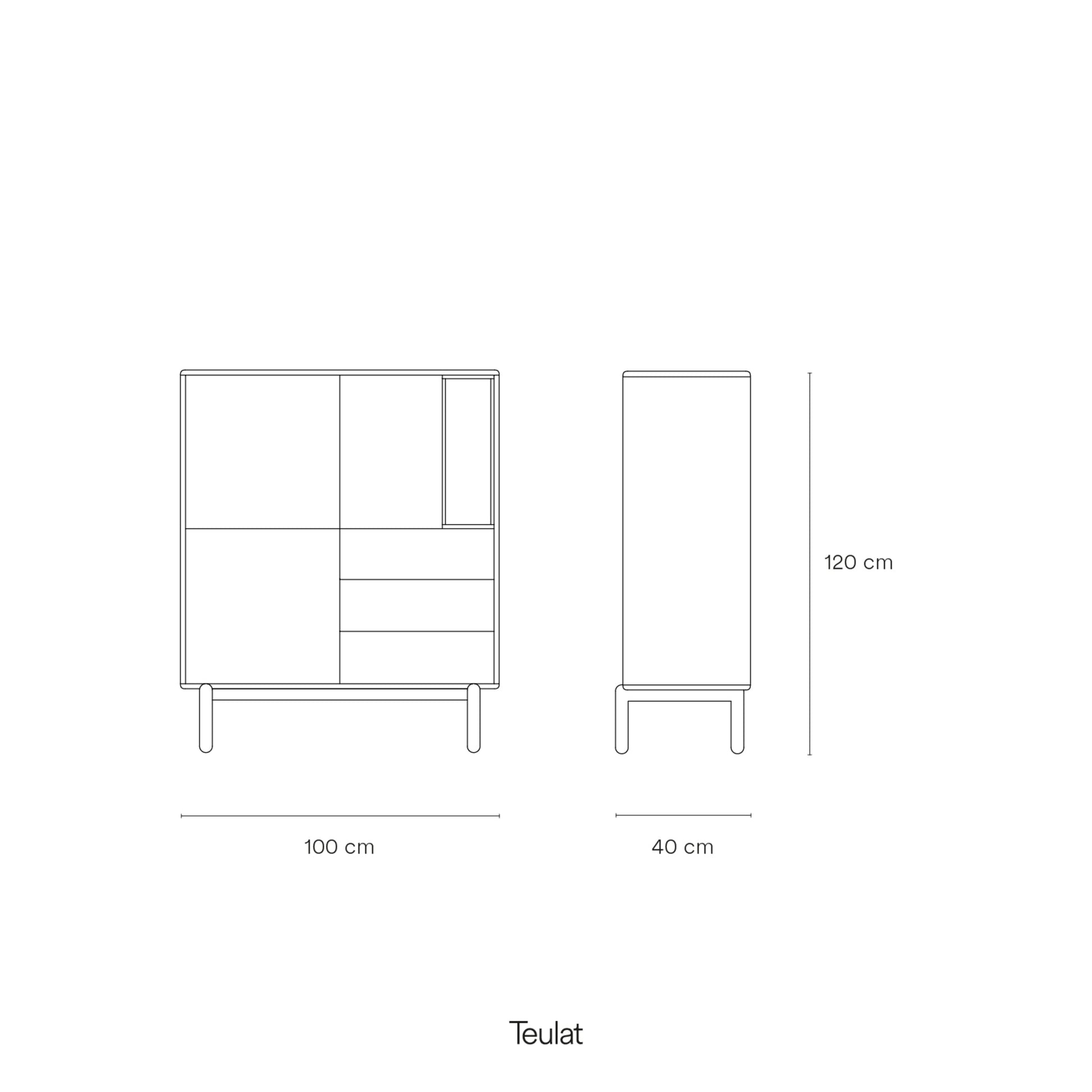 This sophisticated piece marries sleek anthracite grey with warm oak accents, creating a perfect centerpiece for contemporary homes. The innovative design features three soft-close drawers and two push-release doors with five internal shelves, offering abundant hidden storage. The striking open display area, finished in light oak veneer, provides the ideal showcase for your treasured items. Standing on elegant solid wood legs at a perfect height of 120cm, this premium cabinet combines exceptional craftsmanship with versatile functionality. At 100cm wide, it's generously proportioned yet fits seamlessly into modern living spaces. Elevate your interior with this statement of refined style.