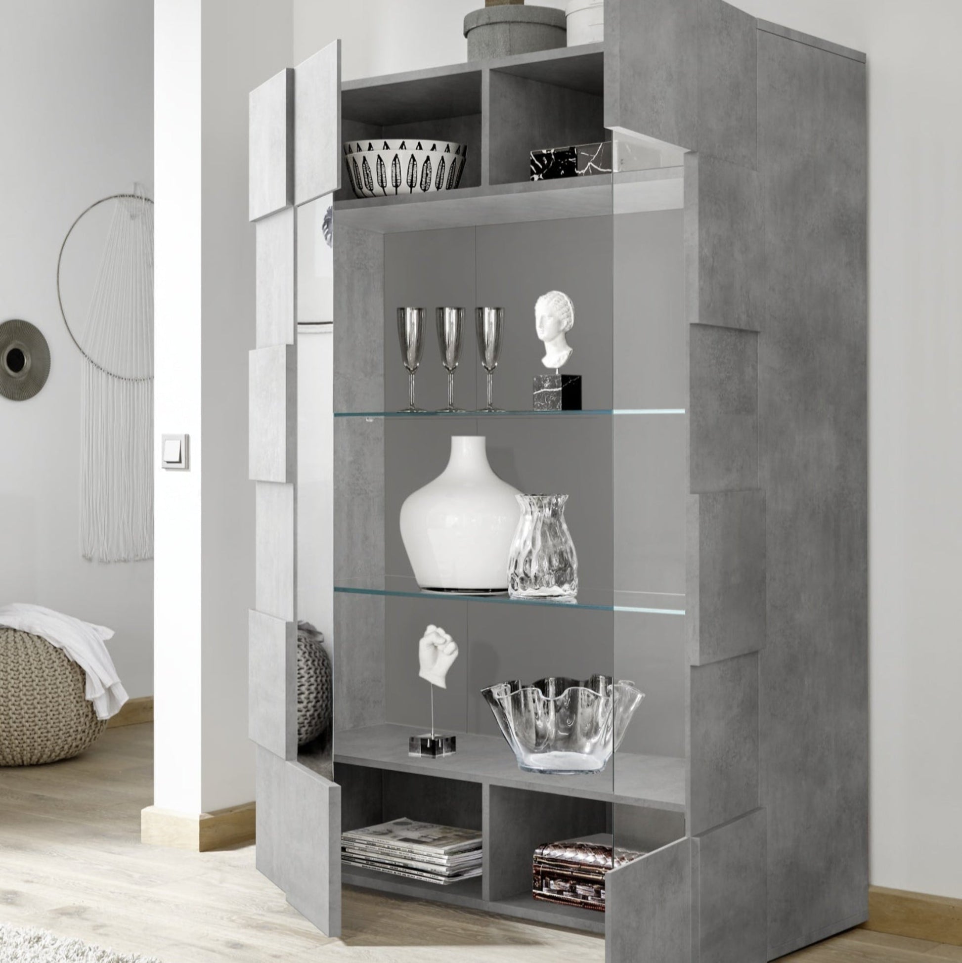 Donato Display Cabinet, Two Doors, Optional LED Spotlight - Grey Finish