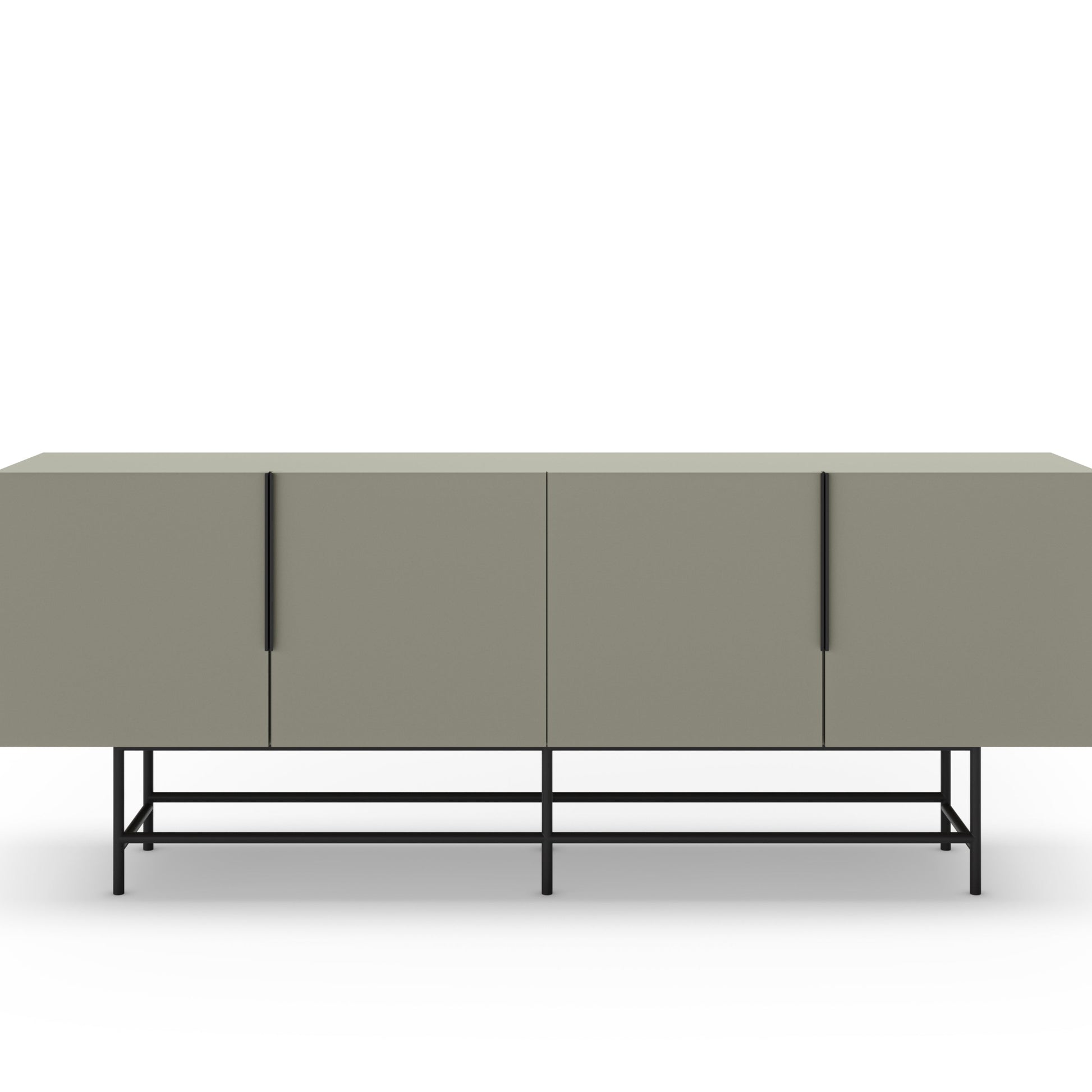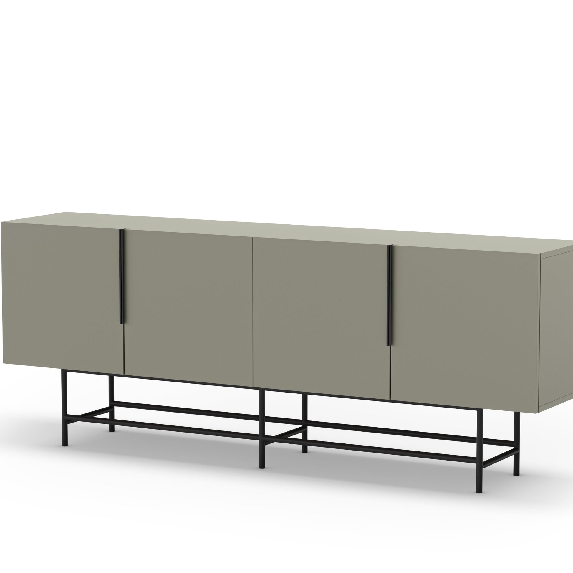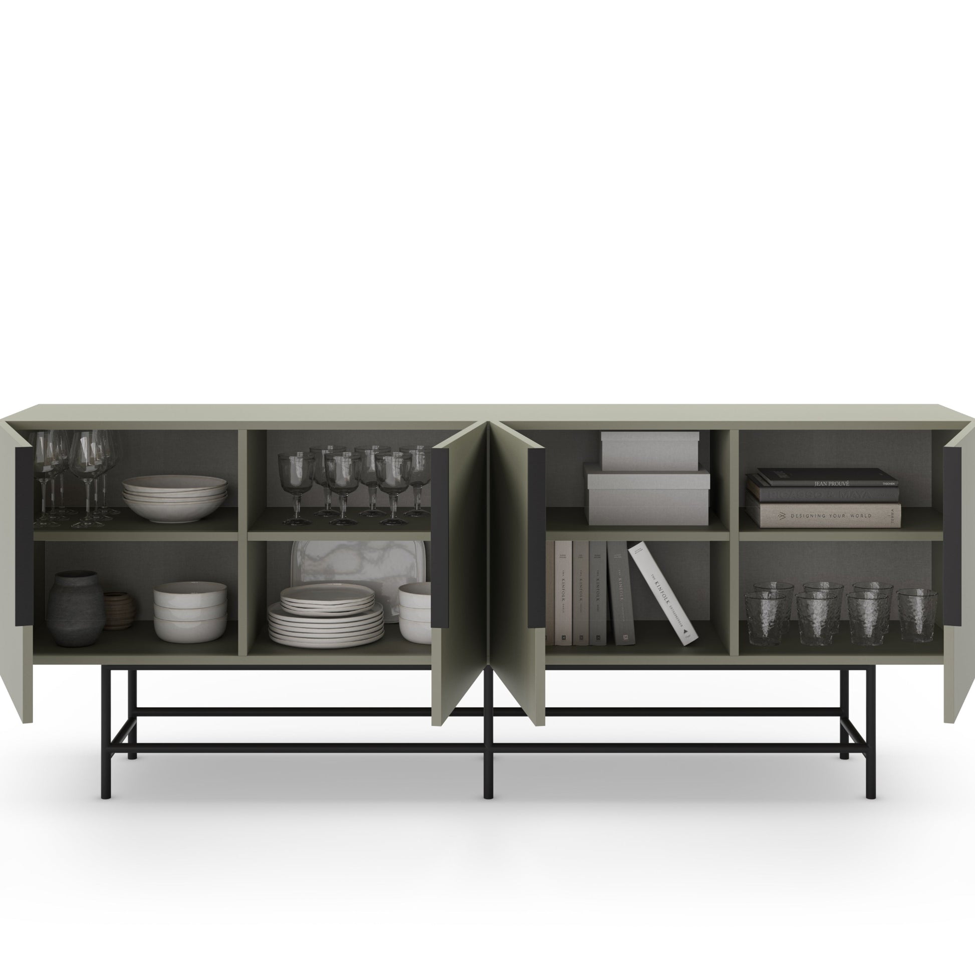 Its four light green MDF and metal doors open to reveal spacious internal shelves, ideal for organising your essentials. Supported by a sleek black metal frame, this sideboard adds a contemporary touch to any room while ensuring durability. Elevate your living space with this stylish and functional piece designed to complement modern interiors.