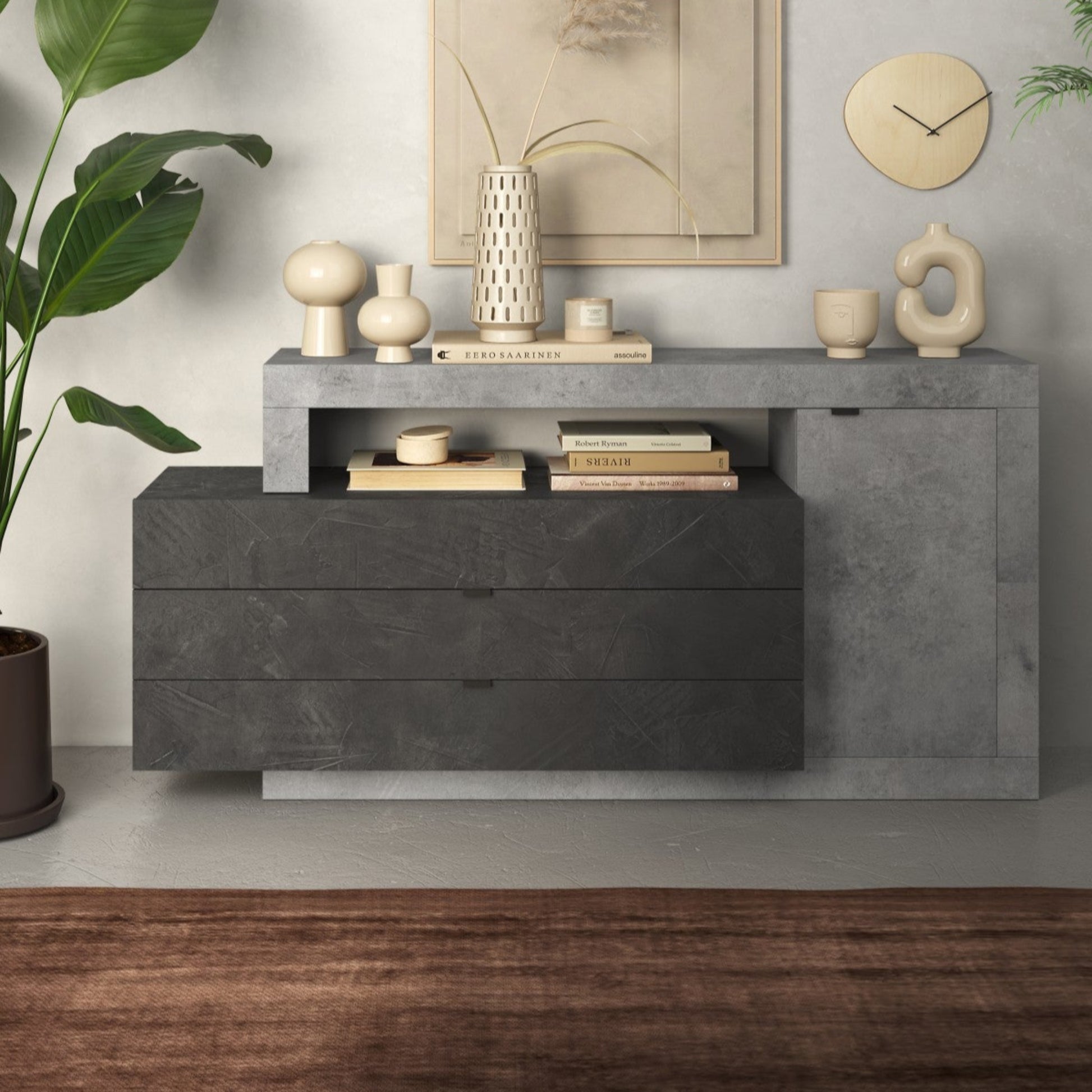 Forenza Sideboard, One Door, Three Drawers - Grey and Anthracite Finish
