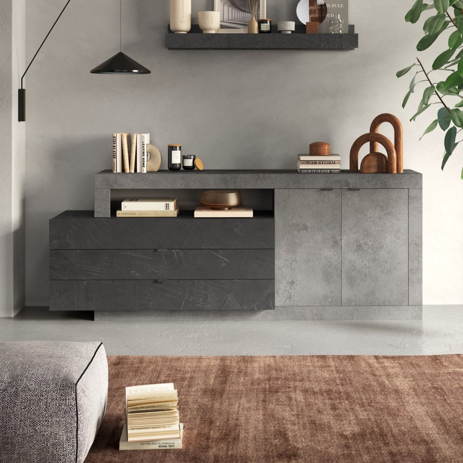 Forenza Sideboard, Two Doors, Three Drawers - Grey and Anthracite Finish
