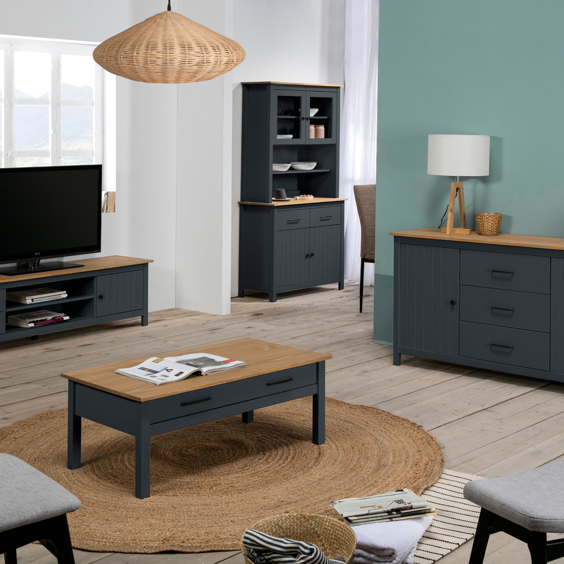 The Miranda Painted Wood Display Buffet combines stylish matt blue painted pine with a natural waxed pine top for a striking finish.