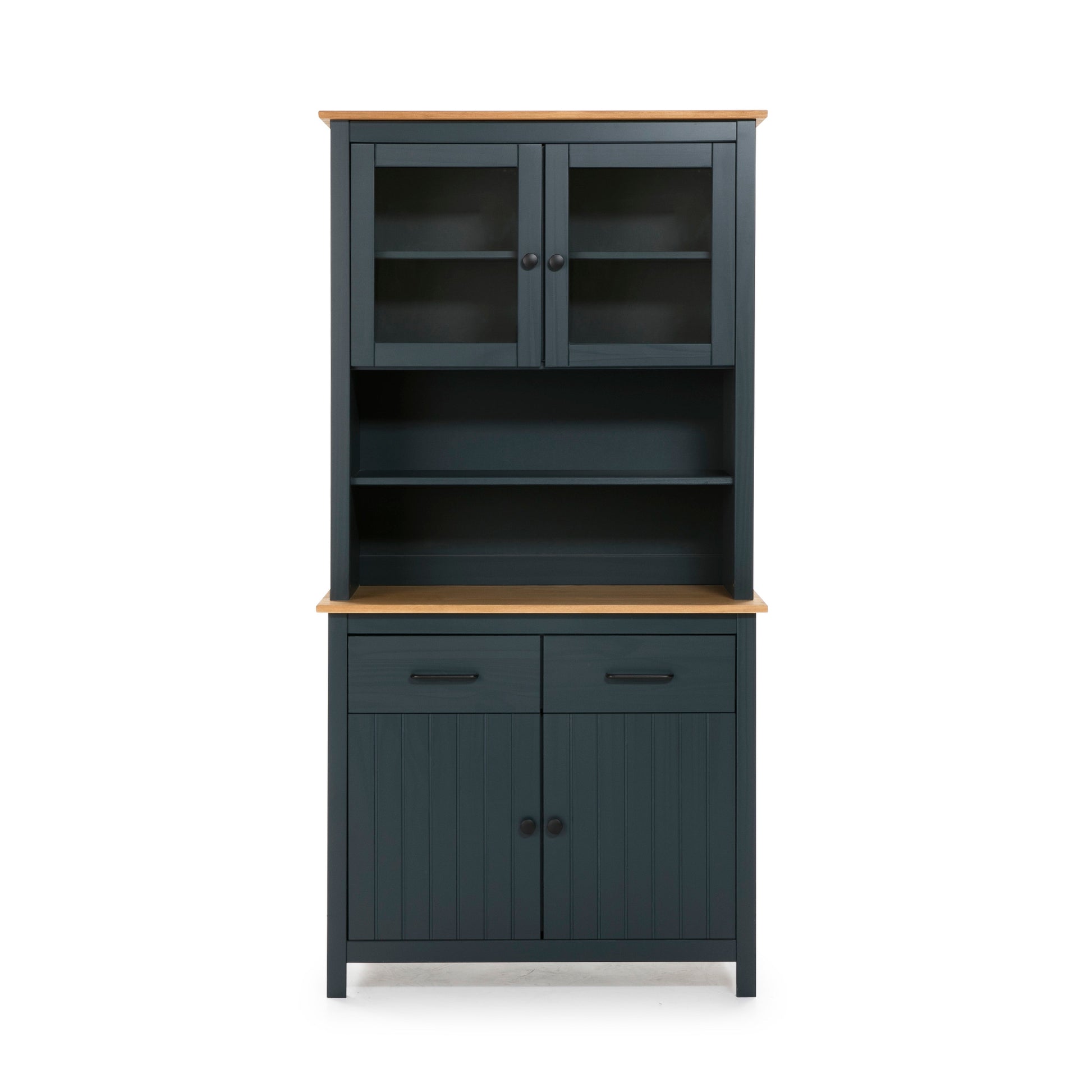 Miranda Painted Wood Display Buffet - Matt Blue and Waxed Pine