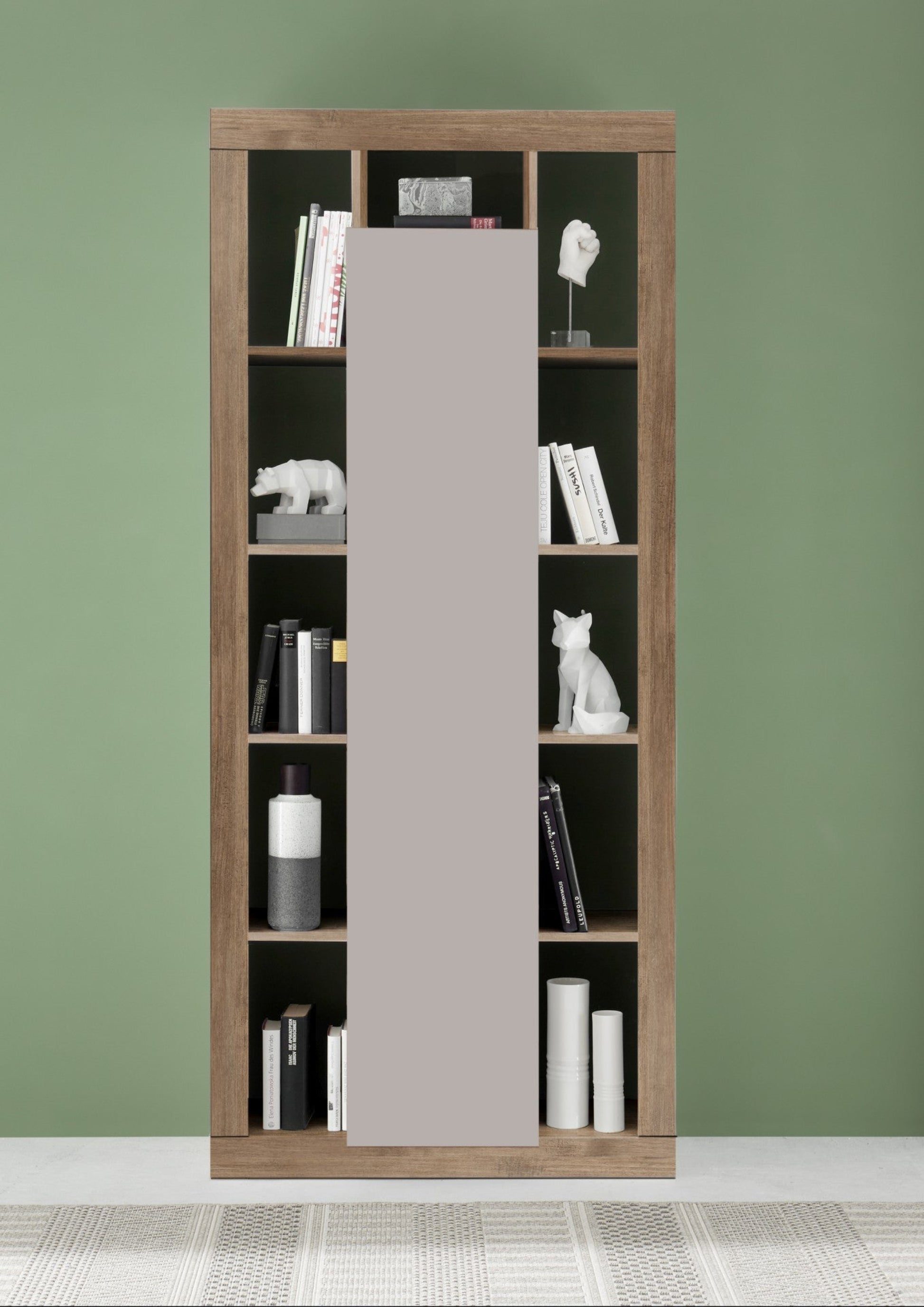 Rolo Bookcase and Storage, One Door - Cashmere Taupe and Mercure Oak Finish