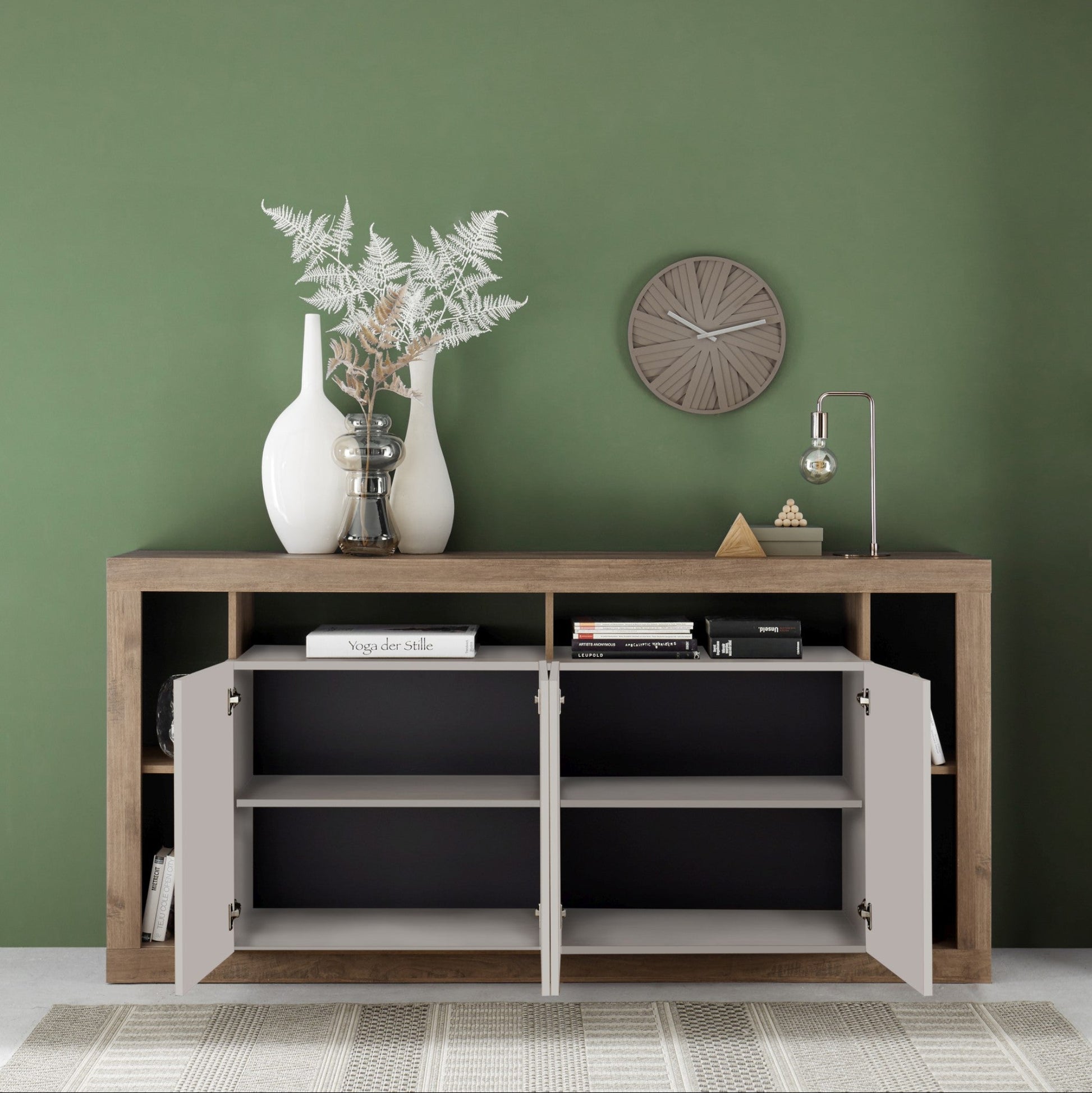 Rolo Sideboard, Four Doors - Cashmere Taupe and Mercure Oak Finish