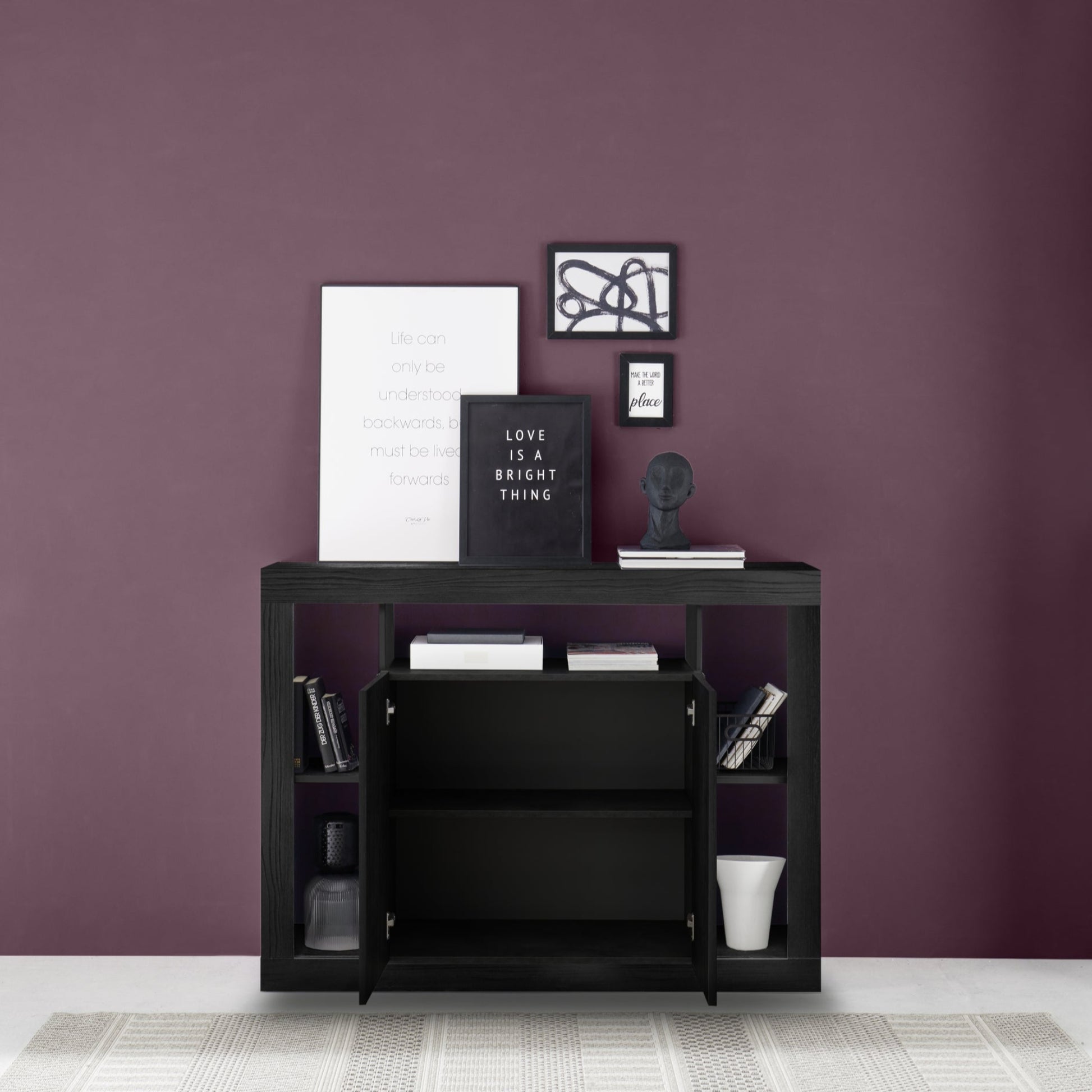 The Rolo Sideboard in a sleek black ash finish combines style and practicality in a compact design.