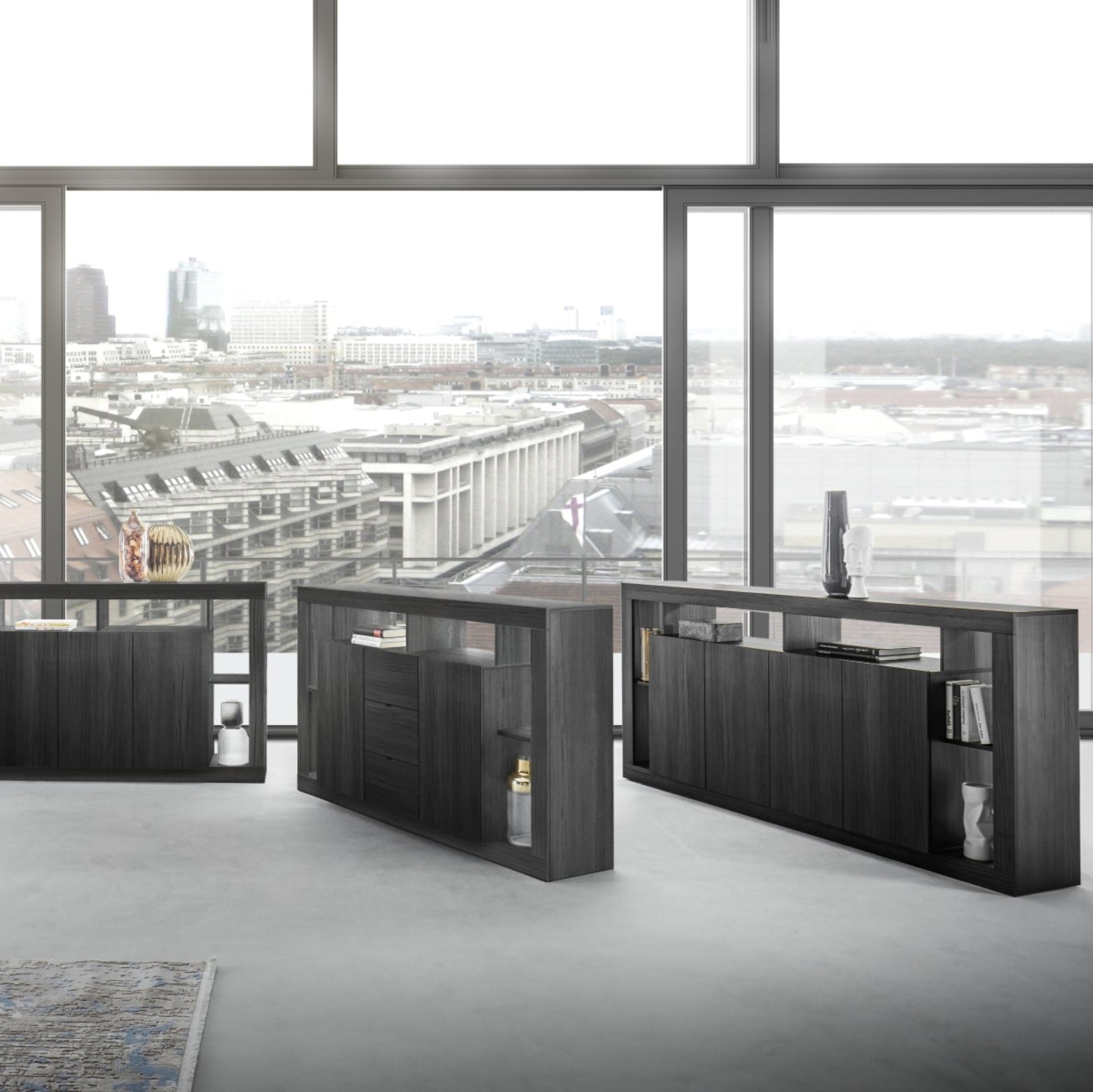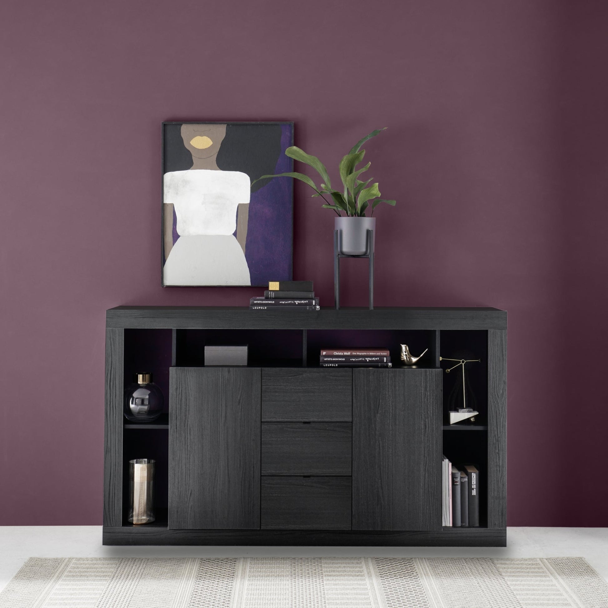 Rolo Sideboard, Two Doors, Three Drawers - Black Ash Finish