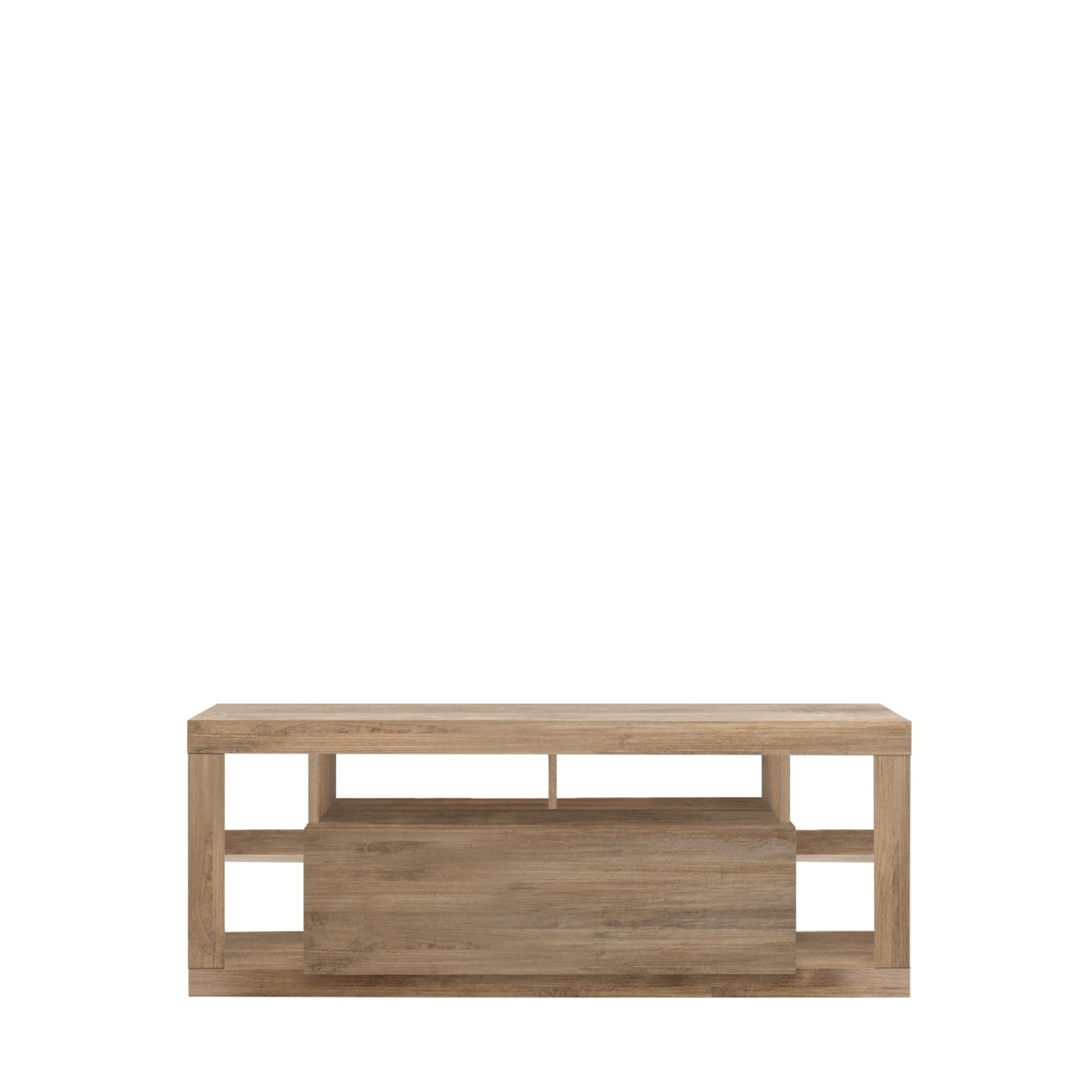 The Rolo TV Stand in a rich dark Mercure Oak finish combines stylish design with practical storage solutions.
