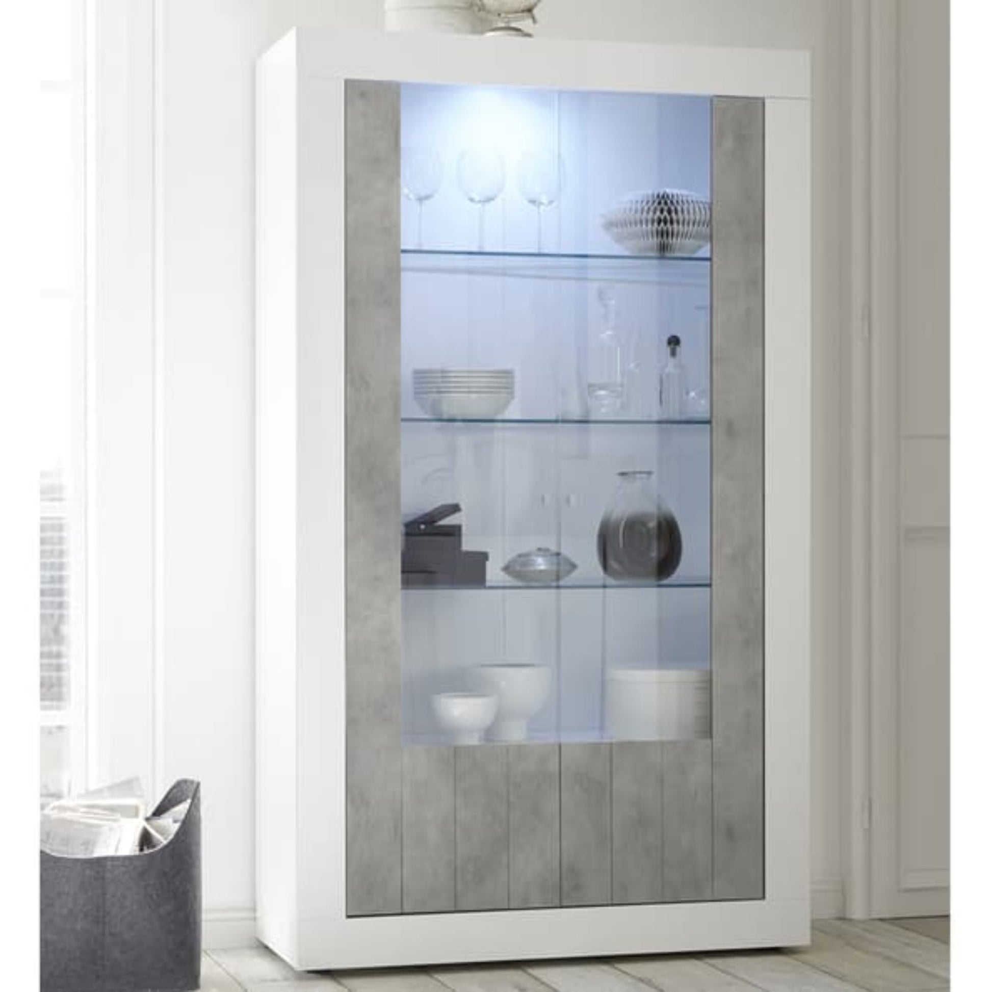 The Urbino Display Cabinet in White Gloss and Grey combines contemporary design with practical storage.