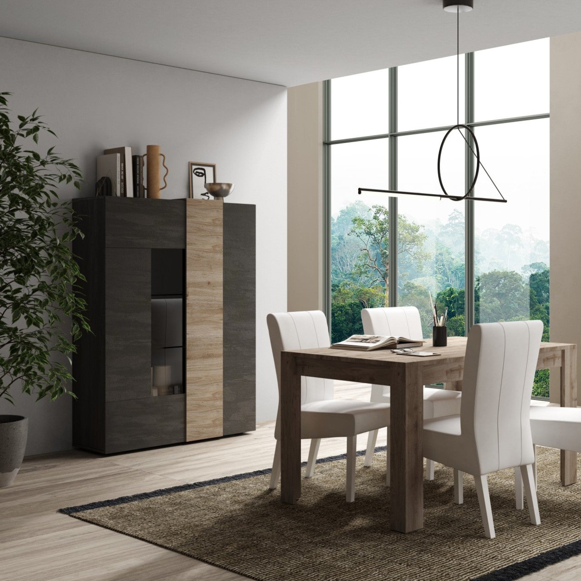The Vinovo Display Cabinet combines a stylish dark brown and light oak finish with two doors, one featuring glass.